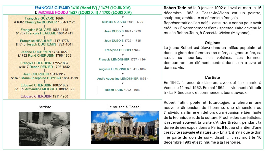 COUSINAGES AVEC CELEBRITES Victoire BRIELLE Robert TATIN Le Douanier ROUSSEAU Jeanne-Marie BERTHIER L’Abbé ANGOT Jean POPEREN Raymond DELATOUCHE A. PAYEN DE LA GARANDERIE Louis BRIDEL Nathalie SIMON Jean-Louis TRETON Yvonne BEAUVAIS Herminie PROD’HOMME Alain GERBAULT Henriette STAHL